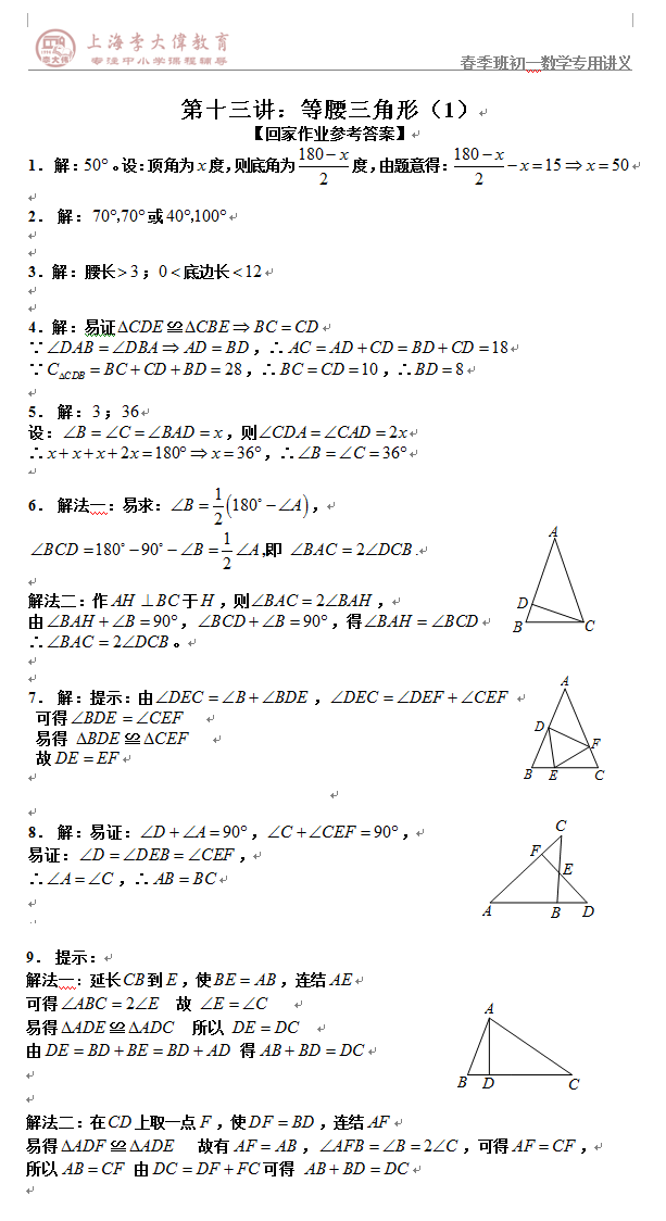 【初一全科班数学】第十三讲|参考答案