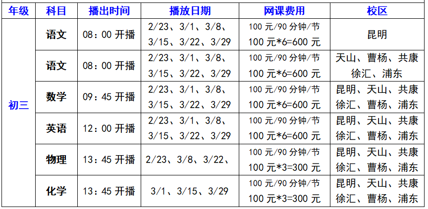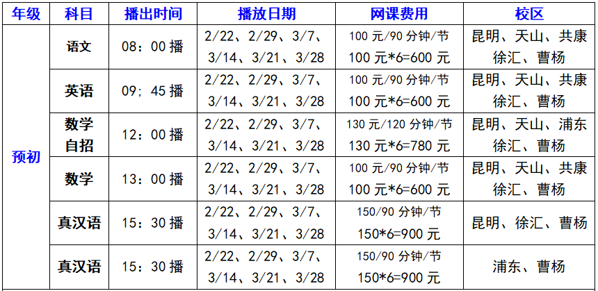 春季班双休日的前6节小学、初中部分课程:暂且从线下转入线上网课。一旦允许线下开课,立即转为线下教学。