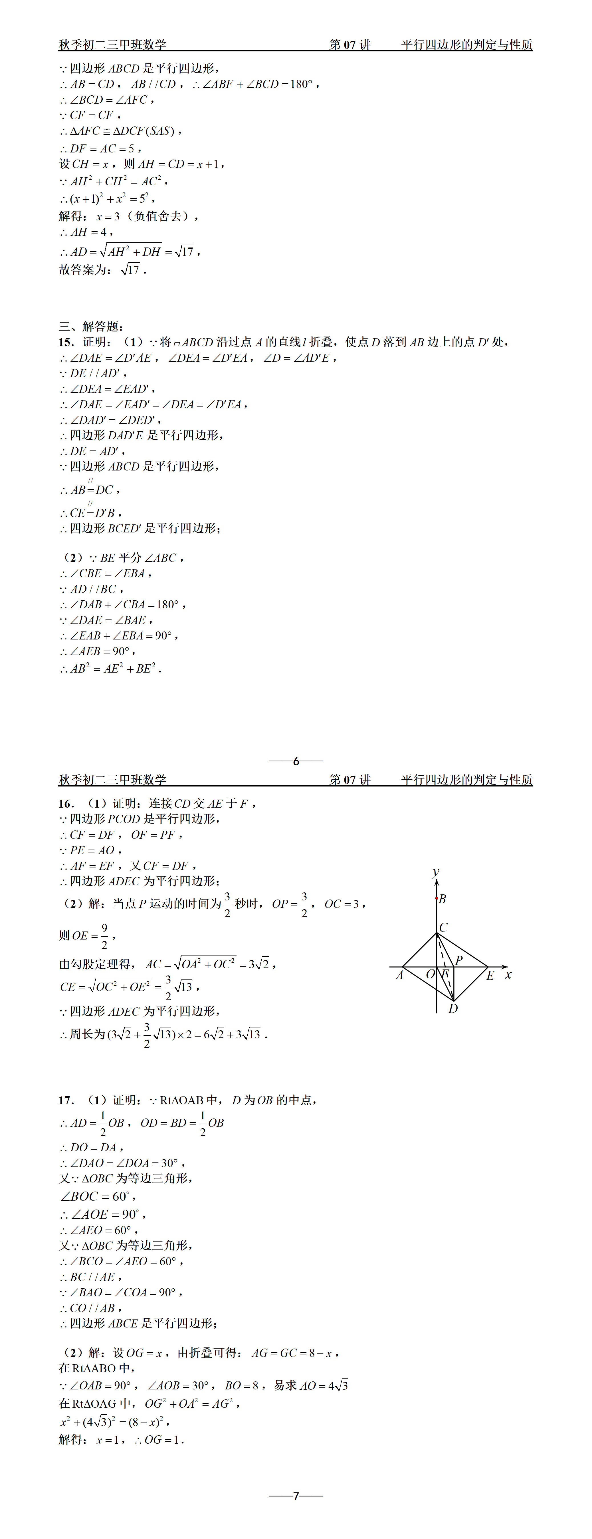 初二三甲 | 25秋季班数学课后练习参考答案第07讲
