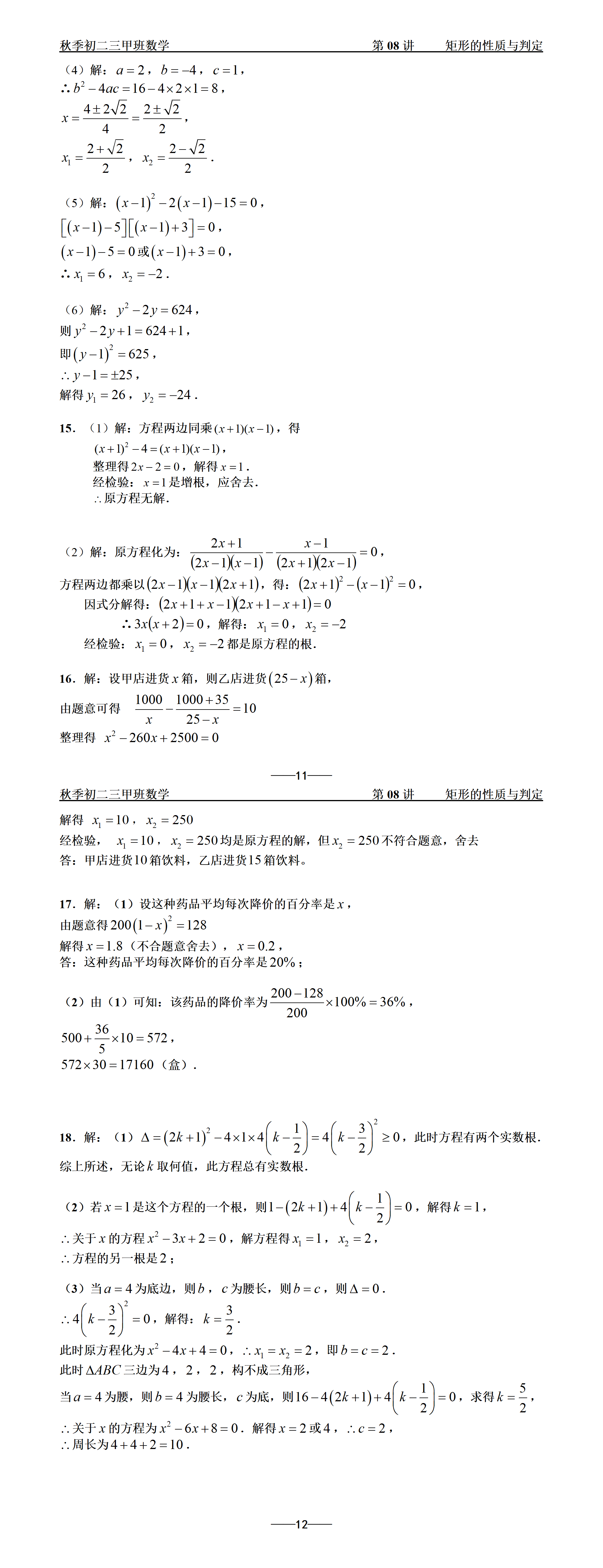 初二三甲 | 25秋季班数学课后练习参考答案第08讲