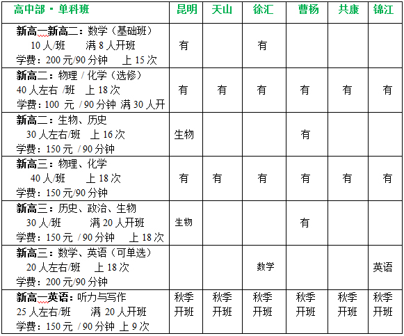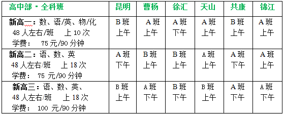 A班(秋季开学后周六上课):暑假上周二、周四、周六;