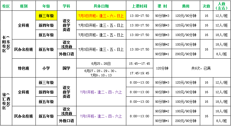 7月2日(周六班)、7月3日(周日班)7月2日起陆续开学。